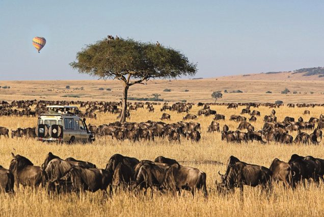 An early morning balloon safari is recommended on this day. You can choose to go on a full-day game drive in the reserve with a picnic lunch or morning and afternoon game drives. Between the game drives, you can choose to go for the Masai village visit, an optional activity. The trees in the distance might turn out to be a family of giraffes, those clumps of bushes a pride of lions, and the rock that moves a rhino lumbering out of your way. With diligence and some luck, you may encounter a family of cheetahs or a herd of elephants crossing the path in front of you. Large animals are not the only entertainment. A family of warthogs may amuse you, running as fast as their little legs will carry them until they forget why they are rushing and stop to regroup. Finally, you will return to the lodge/camp for dinner and your overnight stay.